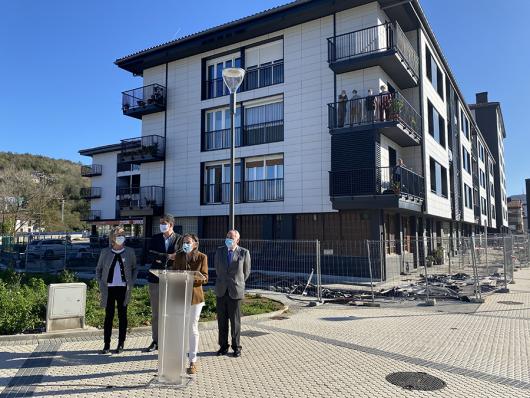 Txomin auzoan egindako birgaitze energetikoko obrak amaituta, Lurralde Plangintza, Etxebizitza eta Garraioetako kontseilari Iñaki Arriolaren, Donostiako alkate Eneko Goiaren eta Donostiako Bultzada Ekonomikoko zinegotzi Marisol Garmendiaren bisita jaso dute.